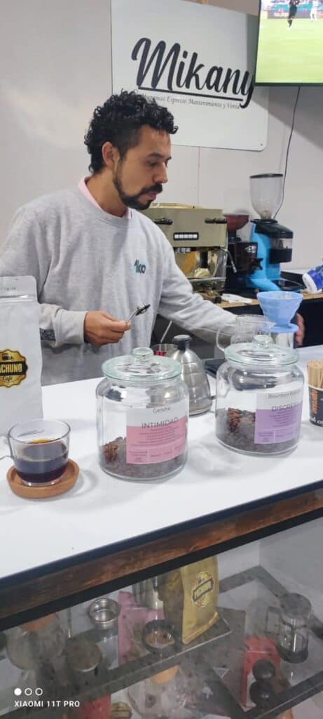 Alejandro Núñez Gamboa: «Nuestro proceso inicia en las fincas de Pacho, trabajamos con una asociación de caficultores locales, de quienes compramos, transformamos y comercializamos los mejores granos. Primero, medimos la humedad del café; luego, determinamos su factor de rendimiento y densidad. Con estos datos, ajustamos la temperatura de tostado para garantizar la mejor calidad, ofreciendo así un café que representa el sabor auténtico de Pacho y Cundinamarca.»