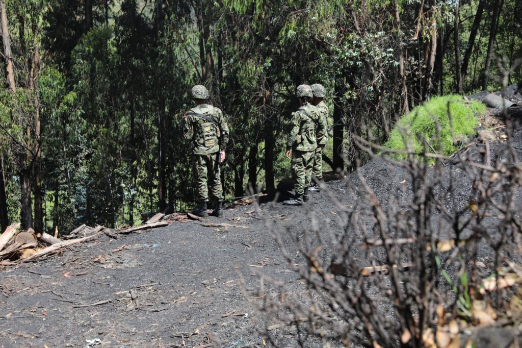Bogotá, D.C. 12 de febrero de 2026. #LaCARactúa. Una operación conjunta de la Corporación Autónoma Regional de Cundinamarca – CAR, el Ejército Nacional, la Fuerza Aeroespacial y la Policía de Carabineros permitió comprobar en flagrancia la ocurrencia de quemas a cielo abierto para la producción de carbón vegetal en la vereda Farfán del municipio de Ráquira, departamento de Boyacá.
