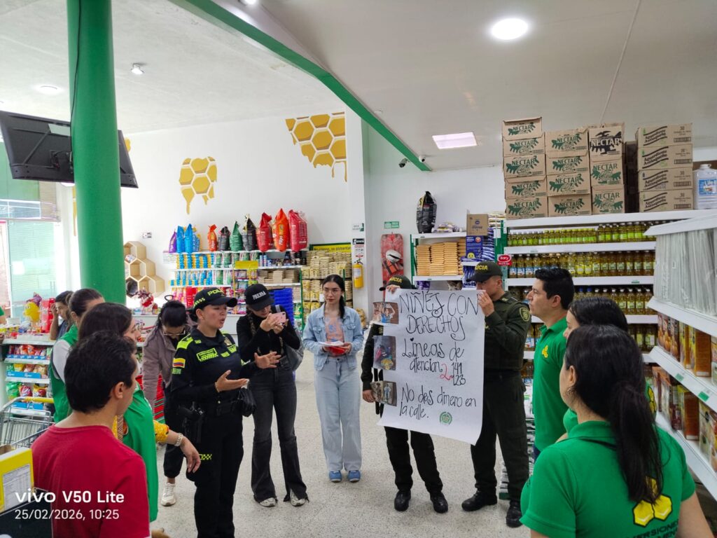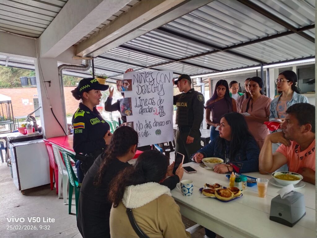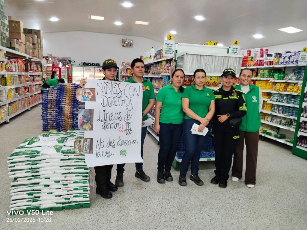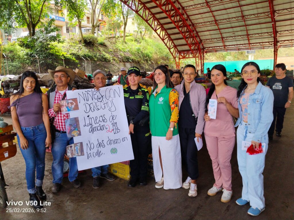 La actividad se desarrolló mediante el programa “Abre tus Ojos” en articulación con el señor Comandante de Estación, I.C.B.F, Comisaria de Familia y oficina Secretaria de Desarrollo Social de la Alcaldía Municipal se realizó sensibilización sobre la Mendicidad y el Trabajo Infantil mediante el lema «Niñez con derechos No con Obligaciones» en la Plaza de Mercado supermercados de Cadena, sector comercio, emisoras Pacho Stereo y Radio Futurama, mediante la entrega de volantes informativos se llevó un mensaje cercano y radial a la población con el fin, de contrarrestar está práctica en contra de los menores de edad, dando a entender las consecuencias penales que se podrían tener cuando se utiliza menores de edad para ejercer la mendicidad, generando conciencia ciudadana sobre los efectos del trabajo infantil, así mismo se realiza intervención en semáforos y vías públicas, mediante recorridos se realiza difusión de las líneas 141 del ICBF y 3223486113 Policía de Infancia y Adolescencia del Distrito Rionegro; así mismo, incentivando a la ciudadanía a denunciar y a proteger los derechos de la niñez, frente a la explotación laboral.