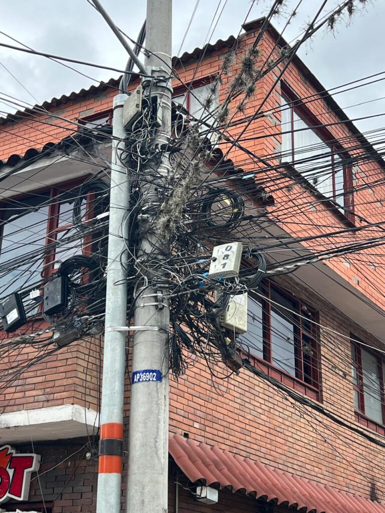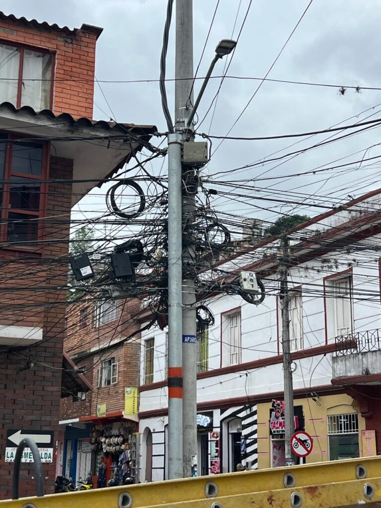 La Resolución CRC 7120 de 2023 regula el acceso de las empresas de telecomunicaciones a la infraestructura eléctrica, exigiendo orden y seguridad en las instalaciones. Sin embargo, en la práctica, muchos cables se instalan sin cumplir las normas técnicas, lo que provoca marañas de alambres colgando, postes saturados y un paisaje urbano deteriorado.