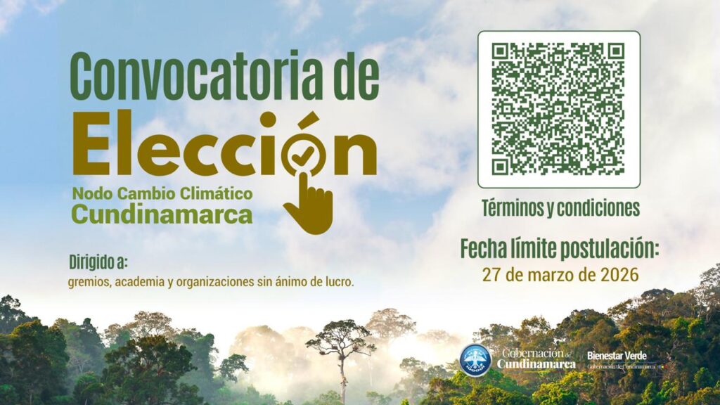 (Cundinamarca, 24 de marzo de 2026). La Secretaría de Bienestar Verde abrió la convocatoria para elegir tres representantes de gremios y asociaciones del sector privado, academia y entidades sin ánimo de lucro que integrarán el Nodo de Cambio Climático de Cundinamarca (NCCC) durante un período de cuatro años.