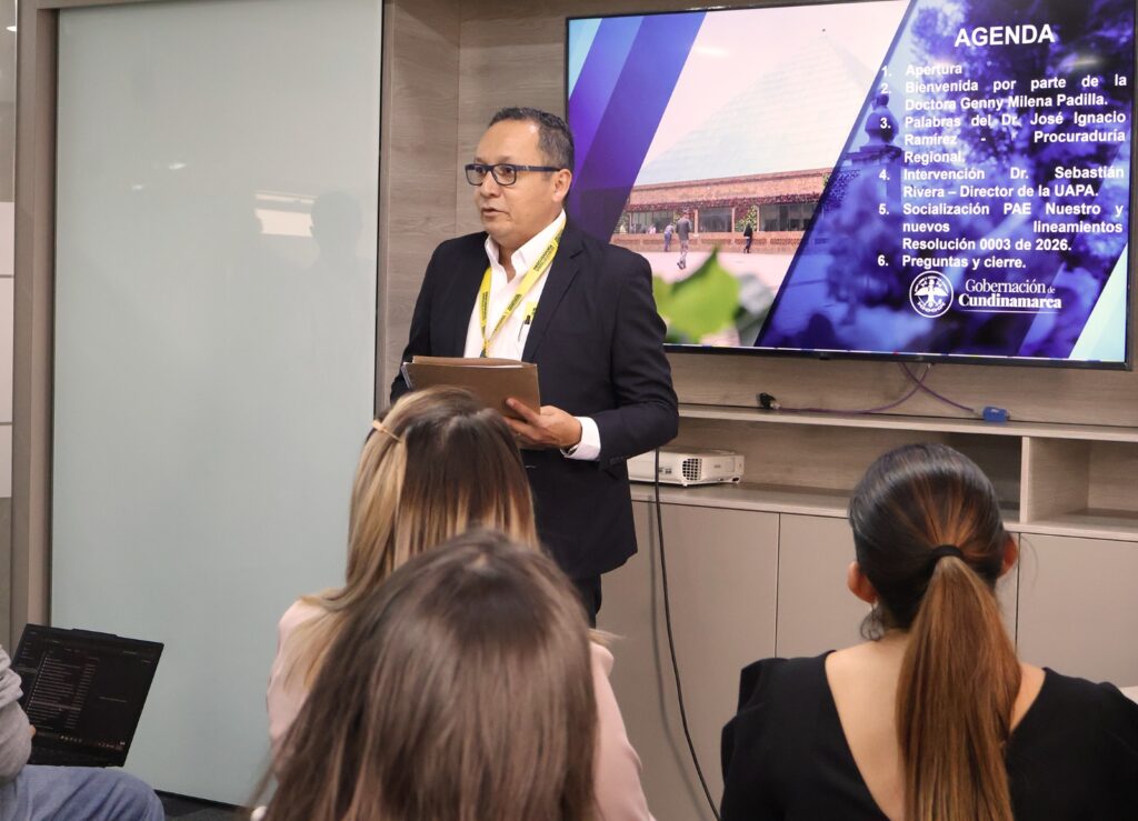 (Cundinamarca, marzo 27 de 2026). En atención a la solicitud de la Procuraduría Regional de Cundinamarca, la Secretaría de Educación del departamento lideró la jornada de trabajo con actores clave del Programa de Alimentación Escolar (PAE), con el propósito de socializar los nuevos lineamientos establecidos a nivel nacional y fortalecer la implementación del modelo diferencial PAE Nuestro en el territorio.